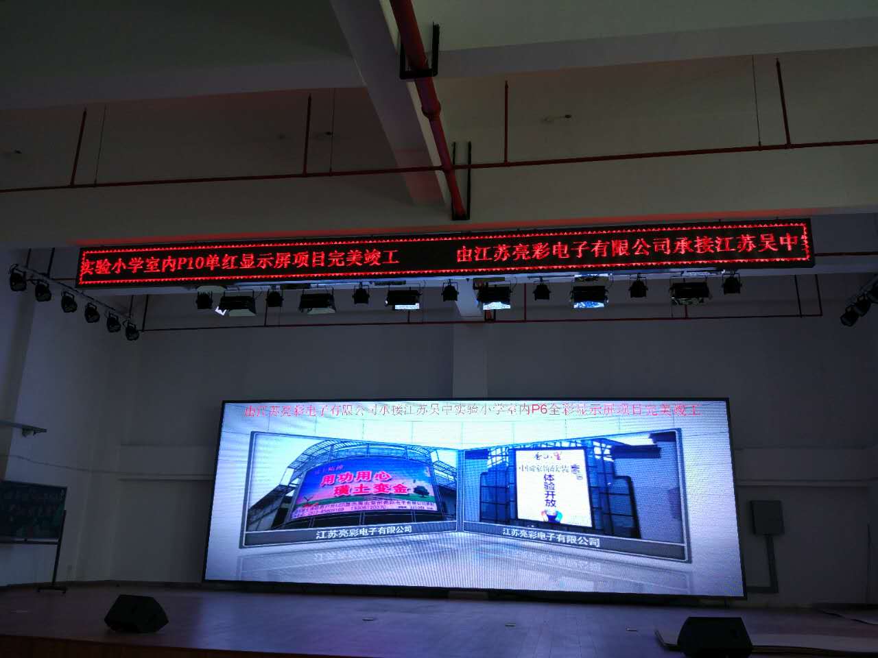 Today, the Jiangsu Liangcai electronic construction of Wuzhong Experimental Primary School indoor and outdoor full color P6 display, single red P10 bar screen successfully completed. Wuzhong experimental primary school was founded in 1996, is located in Suzhou City, Wuzhong District east Wu tower, the ancient river transport, is the school modernization of Jiangsu Province, Suzhou City Experimental Primary School education. The school has 25 classes, more than 1000 students, more than 70 teachers. Campus covers an area of more than 29000 square meters, beautiful environment, green, architectural sketches and other features of Jiangnan gardens. The building area of more than 8500 square meters, has a library, laboratories, computer rooms, TV room, chess room, fencing and other special field room, modern educational facilities.
