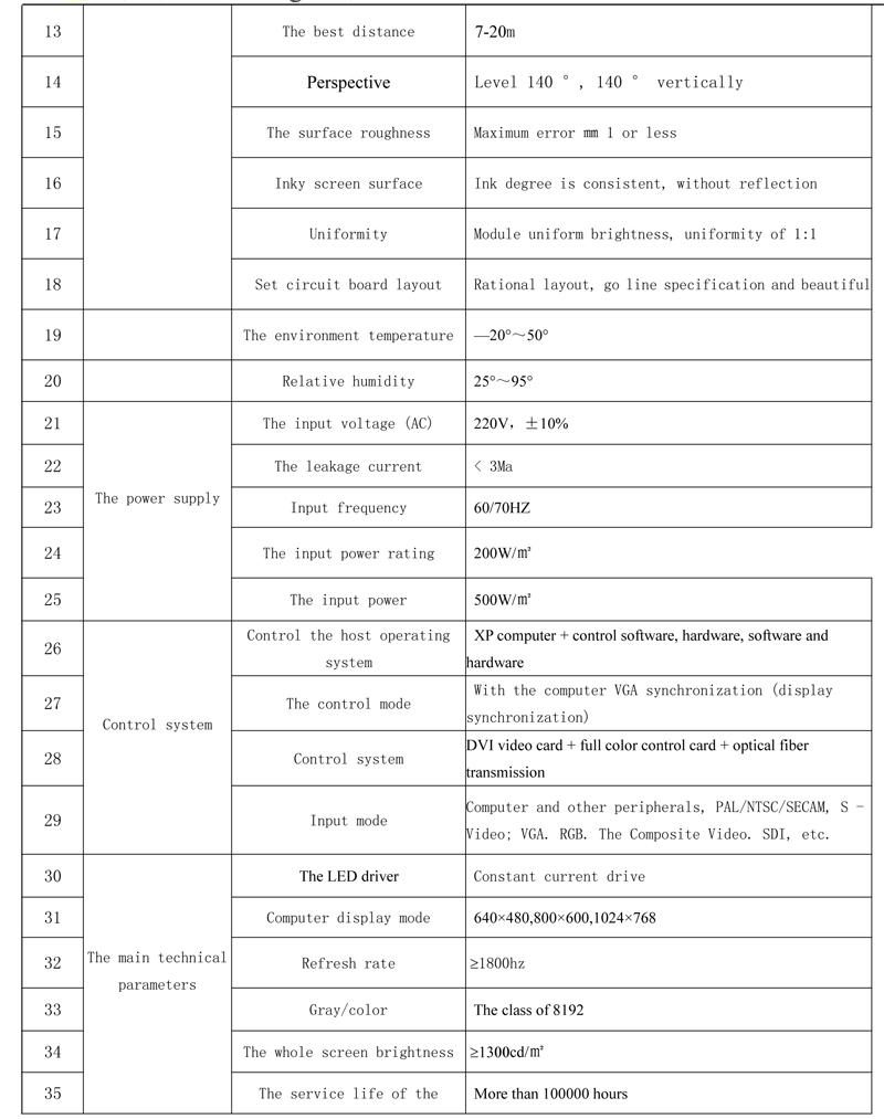 1), advanced system design is reasonable, the display effect is stable, easy installation and maintenance, professional antiskid processing module surface, floor tile is special, supporting the screen height can be adjusted flexibly, bearing 1 ton.