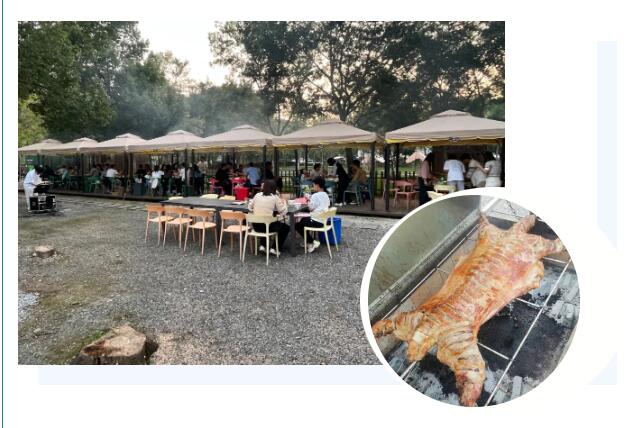 趁著旺盛的炭火,燒烤正式拉開(kāi)了帷幕。整個(gè)燒烤過(guò)程格外溫馨,歡聲笑語(yǔ)隨著縷縷炊煙縈繞在空中,大家吃著親手烤出的烤串,聊著自己在工作中和生活中遇到的各種趣事,現(xiàn)場(chǎng)氛圍熱烈,其樂(lè)融融!