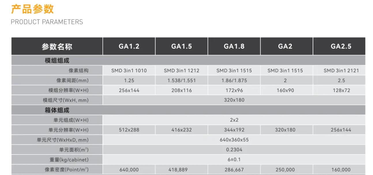 GA箱體是-款640x360mm尺寸的平臺級箱體,其比例為16:9,配合模組可組成顯示分辨率為16:9的標準分辨率,還原真彩視界。該箱體架構集成度高,隱藏式走線,屏體整潔美觀。模組搭配GMS輕鋼系列中的GMS PIus模組(320x180mm),可實現雙卡雙電源冗余備份,亦可實現雙電力方案,功能強大實用。廣泛應用于會議室、展廳、調度中心、指揮中心等場所。
